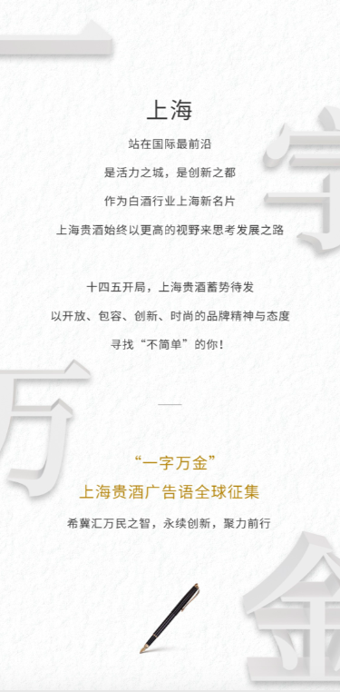 问鼎奖(1名):最终被采用的广告语,将获得每字1万元人民币的终极现金大奖,并授予“乐鱼官方网站-乐鱼(中国)”企业大使,尊享全年最高会员礼遇,同时获得乐鱼官方网站-乐鱼(中国)青澄黄贵酿1套(天青、阳澄、月黄)及价值14000元美酒礼券包等超值权益。